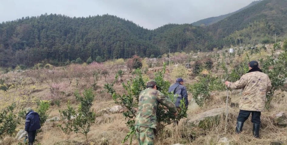 在农业农村局大力支持下,今年开启本地乡土人才,“土专家”服务全县桔园,技术管理及修剪方面开展社会化服务。3 月 17 日,由县园艺场肖尊鹏、肖尊典等 6 名老技术员组成的 “银发服务队”,带领青年农场主邓联刚等新农人,对岩落坪 400 多亩蜜桔树进行 “春剪大手术”。